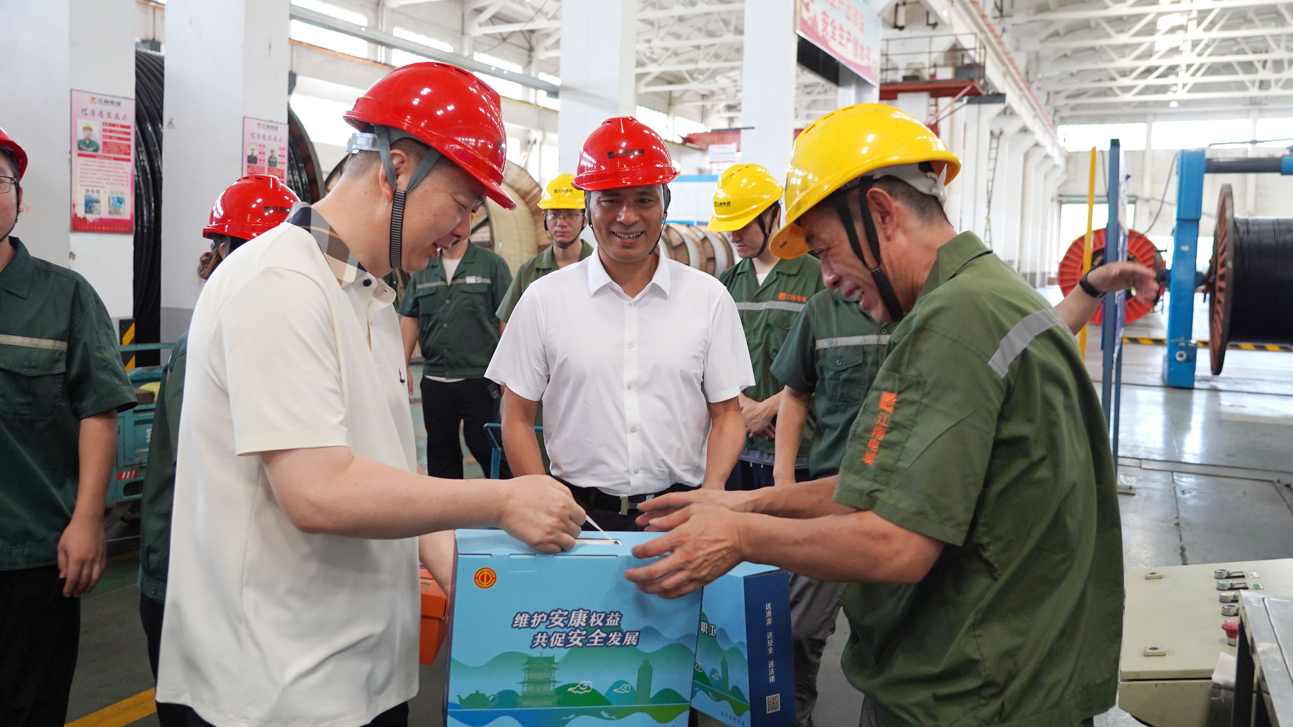 副總經(jīng)理韓偉、副總經(jīng)理史明強(qiáng)赴防火鋁線電纜分廠七車(chē)間送清涼